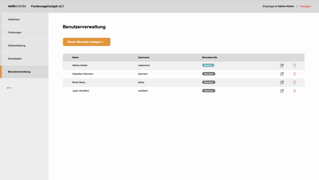 Beliebig viele Nutzer:innen mit wenigen Klicks anlegen, Rollen festlegen, Zugriffe steuern – ganz ohne IT-Abteilung. So sieht jeder nur das, was wirklich relevant ist.