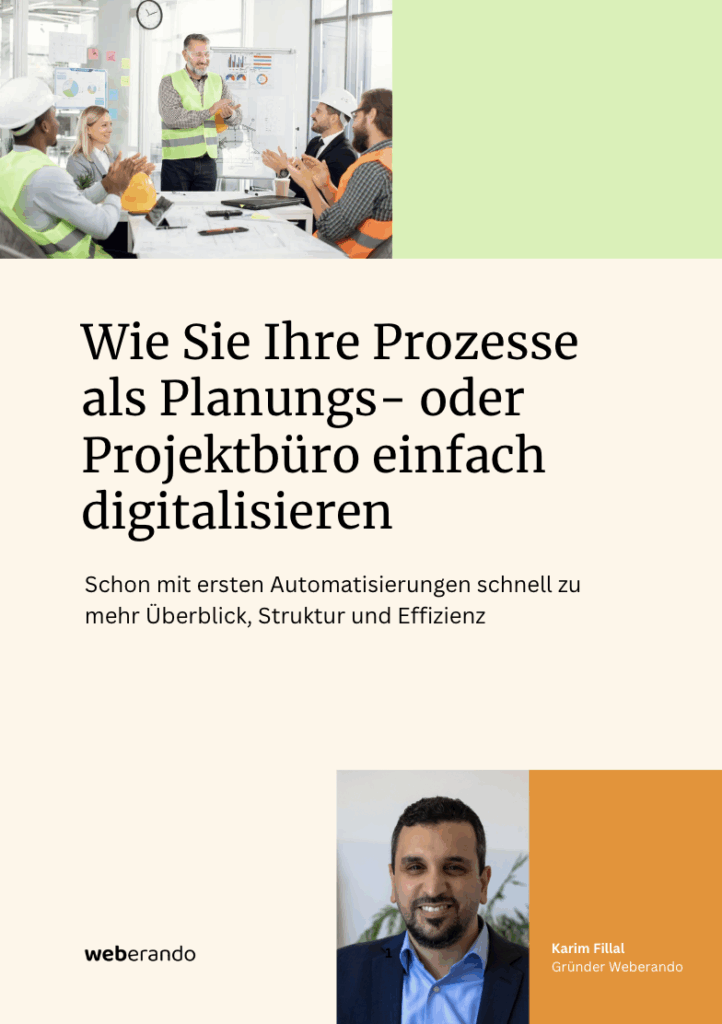 In meinem neuen PDF-Ratgeber zeige ich für Planungs- und Projektbüros auf, wie man mehr Struktur, Übersicht und Effizienz in das eigene Tagesgeschäft bringen kann – für sich selbst und für das eigene Team – jetzt kostenlos sichern: